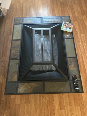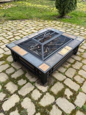 Hamilton Rectangle Wood Burning Fire Pit Brown - Real Flame: Slate Top, Mission Style Frame, Spark Screen & Cover