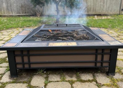 [This review was collected as part of a promotion.] Nice looking firepit. The pan where you burn was a lot shallower than i had anticipated but it works well for burning smaller pieces of wood for an ambient fire. We will not be using this to burn large logs or things like paper or cardboard like we do in our other deeper firepit. Some of the welding was spotty, however i do like that the design keeps the flame in a center surrounded by a rim of tile, i feel this adds a slight safety feature. Looking forward to summer nights with this fire pit.