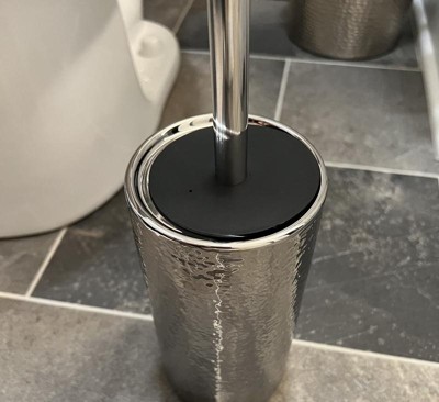 ELLE DECOR Hammered Metallic Ceramic Toilet Bowl Brush : Microfiber, Machine Washable, Non-Slip Backing