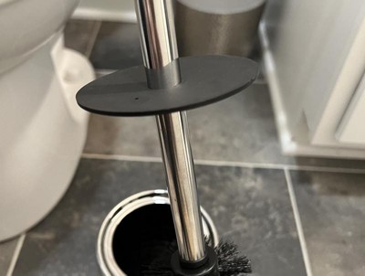 The stopper for the toilet bowl brush is a cheap black piece of foam, not metal as pictured. The base of this is very nice, but the foam piece makes it look cheap and doesn’t look like it will hold up very long.