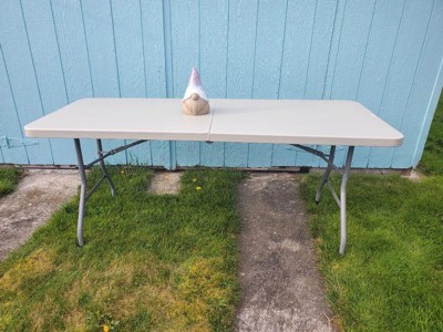 [This review was collected as part of a promotion.] Very durable table that is great for gatherings. I put this outside to use when the whole family is together for bbq. It is not too heavy and easy to maneuver. I like it a lot and when you’re done you can just fold it back up.