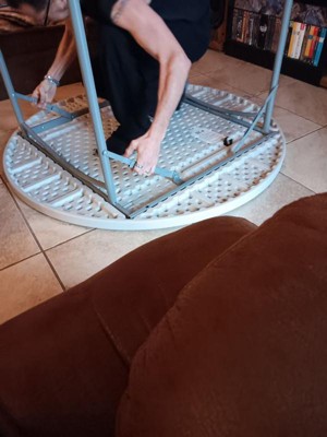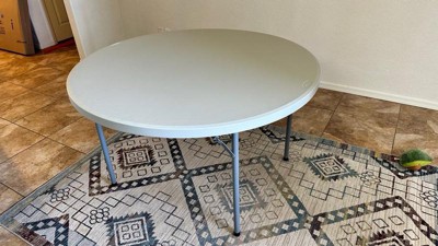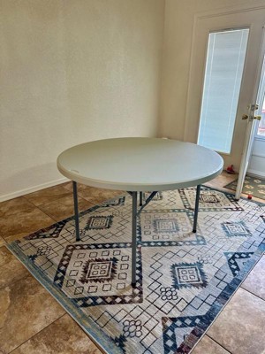 [This review was collected as part of a promotion.] I use this table for so many things. From yard sales to cook outs even taking to my camper that I have a permanent spot out. It so easy to tote around. It’s made very well and the perfect size. It is large and round. Simply easy to put together it’s foldable and doesn’t take up a lot of space. Very durable and made to last.