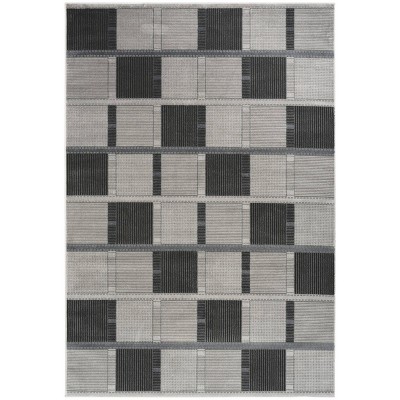 Hampton HTN230 Indoor/Outdoor Machine Made Area Rug - 4'x6' - Grey/Black - Safavieh