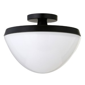 Pairing a modern canopy with an Art Deco-inspired body, this semi flush mount ceiling light creates an updated mid-century look in your entranceway, hallway, or dining room. The perfectly paired metallic accents coordinate with any color scheme, while the white milk glass domed shade casts beautifully diffused ambient light. This fixture will add effortless retro styling in any room of your home.