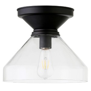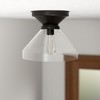 Pairing a traditional canopy with a modern bell-shaped shade, this flush mount ceiling light creates a simple and clean look in your entranceway, hallway, or dining room. The clear glass shade showcases the bulb of your choice – try a vintage-style Edison bulb for effortless retro styling. The transitional style lets this fixture blend in or stand out in many décor styles and color schemes.