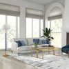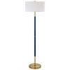 Add visual interest to any room with this two-toned contemporary floor lamp. On-trend neutral colors are perfectly paired with lustrous metallic accents to elevate your design scheme. Its generous French drum shade holds space for two bulbs to cast extra light wherever its needed.