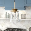 Illuminate your kitchen, entryway or dining room table with this retro-inspired pendant light. Its tapered cylindrical glass shade is open at the top and rimmed in either blackened bronze or golden brass accents, the perfect backdrop for a statement light bulb of your choice. The 8’ foot adjustable cord lets you customize this fixture to fit your space perfectly.