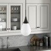 - Paired with a white teardrop glass shade.