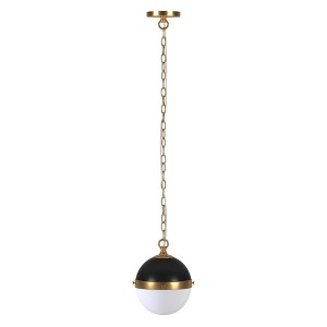 Timeless and elegant, this pendant offers countless possibilities. Its classic styling complements a wide range of decor styles, whether in your living room, dining room, kitchen, or foyer. The exposed mechanical element of the screws pays homage to a nautical inspiration, while the round white milk glass shade adds a touch of glamour. The 6 foot chain is fully adjustable to ensure the perfect fit in your space.