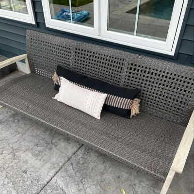 Hampton Wood & Wicker Sofa - Light Gray/Black - Christopher Knight Home: Rattan Patio Loveseat, Water-Resistant