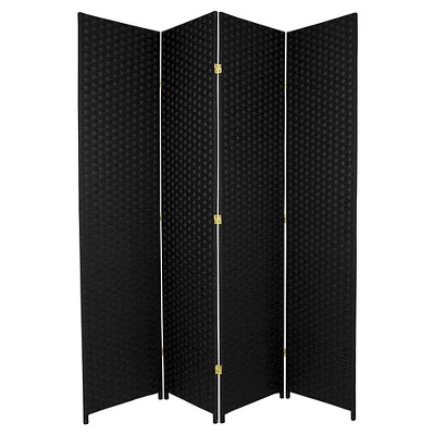 Hand Woven Room Divider, 4 Panel Folding Privacy Screen, Indoor Reed Partition Wall, 63"x67"x0.75"