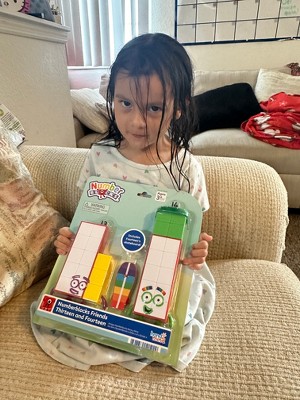 [This review was collected as part of a promotion.] I played with Numberblocks Friends Thirteen and Fourteen with my four year old and eight year old daughter! Love how all 10 blocks were colored white on each Numberblock friend and the remaining numbers were different colored blocks! This helped me teach my four year old how to count the numbers by showing her the colors on each Numberblock Friend. They also really enjoyed the skateboard that came with the Numberblock Friends that was able to attach to the bottom of their feet and skate around. Also, showing the actually numbers at the top was a good way to correlate what the numbers actually looked like with the amount of blocks they had. The only con that my daughters and I shared was that we wished the blocks could be taken apart and stacked back together, making it a fun and interactive way for my four year old and I to practice taking the Number Friends apart and back together.