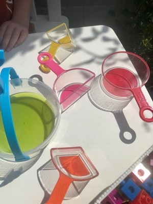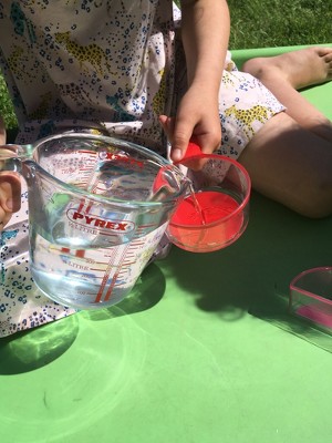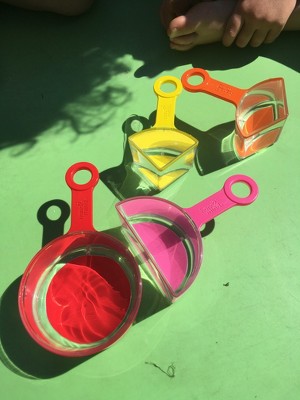 These are a great addition to our kitchen and bath room! My son who is 5 and particularly enjoyed using these fraction cups. He gets bored in the bath but has really enjoyed filling the 1/4 cup up with water and seeing how many he can fit into the other cups. My daughter has been more interested in filling them up with sugar and so I may try to incorporate them into our baking. They are brightly coloured and robust and clearly show the fractions on the bottom of each one. I can see us also taking them outside and using them in the sand pit as a brilliant introduction to fractions.