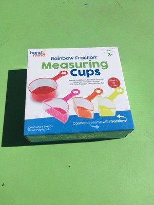 - Learning fractions and measurement are two of the hardest concepts to teach in math, but our Rainbow Fraction Measuring Cups make it easy.Not only do these measuring cups represent fractions, but they're also equivalent to baking recipe sizes as well.