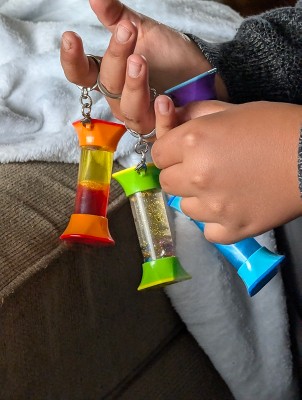 [This review was collected as part of a promotion.] We tried the Soothing Swirlers Sensory Tubes with our daughter who thrives on having sensory toys to help her keep calm. She enjoyed playing with these tubes, each having different contents that keep her attention. I recommend these.