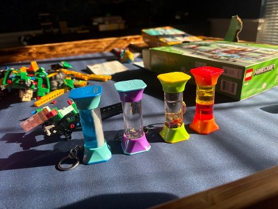 [This review was collected as part of a promotion.] I got these as a calm down toy for my 9 year old son who is in therapy for anger associated with adhd. Unfortunately these just sat at his nightstand and he never attempted to use them accept for the first time they came out of the package. I do think for a younger child, these would be fantastic as a calm down toy in their collection. When my son was younger, I could see this really helping him if we had it then. I love all the colors and sparkles.