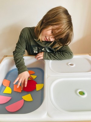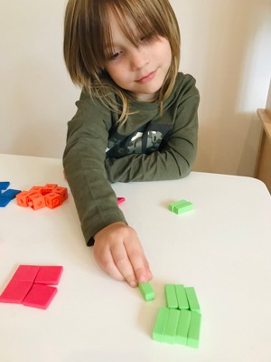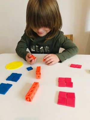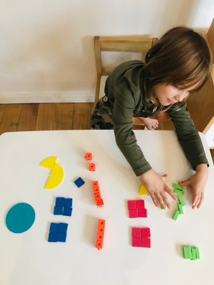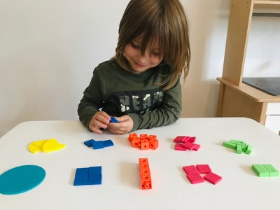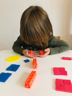 Such a fantastic maths set! As a homeschooling family, finding good maths resources are so important, and this is one of those valuable resources. This set comes with so many different pieces, that have endless ways of teaching maths skills. So far we have been looking at fractions shapes and colours. Although this set is aimed at older children, both of my boys have been using the set very happily, with my youngest being only 4 years old. I especially like the fraction circles, which have helped both of my children understand fractions so much better. The shapes and small cubes are made of foam, and seem very durable, and the Mathlink cubes are fantastic quality. This set really has helped both of my children so much, I would definitely recommend it!