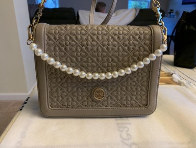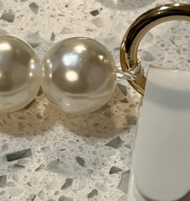 Update your handbag collection with the timeless elegance of this Handheld Mini-Handbag Strap from A New Day™. This mini handbag strap showcases a string of white faux pearls that complement any color or design, allowing you to showcase your refined sense of style. The 11-inch length of the strap allows it to be comfortably held in your hand or looped around your wrist, and its gold-finish metal lobster claw clasps make it simple to clip onto your preferred mini handbag for easy customization.