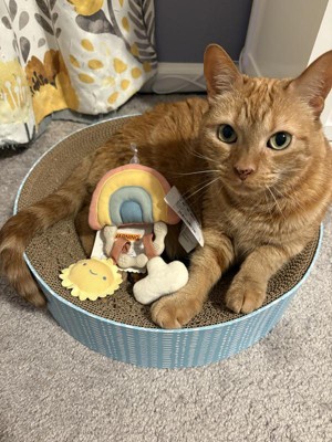 I originally planned to give this to my friends new baby… it’s an adorable shape, the noise isn’t too obnoxious, and the rubber part has different sensory textures. But then my cat stole it out of the bag and it might be his now.