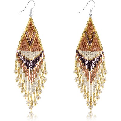 【LIGHT WEIGHT BOHO HAND MADE EARRINGS MAKE A BEAUTIFY BOUTIQUE STATEMENT】Total length excluding fishhook is 5.3CM/2.08inches long with rubber earring back, each earring is light weight at 5.41 grams.