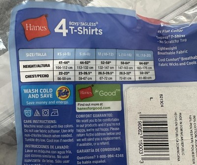 Boys of all sizes love the comfort of Hanes Boys’ Dyed TAGLESS® T-Shirts. The lightweight, breathable Cool Comfort® fabric wicks moisture away from the skin, so he'll stay dry, cool and comfortable all day. With a classic crew-neck design and short sleeves, these T-Shirts can easily be worn as undershirts or by themselves. And of course, these crew-neck T-Shirts are TAGLESS®, so there is no scratchy, annoying tag. This convenient 4-pack of Hanes Boys' Dyed TAGLESS® T-Shirts includes 2 black, 1 navy and 1 gray heather crew T-Shirts.