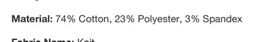 Material: 74% Cotton, 23% Polyester, 3% Spandex