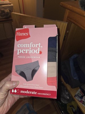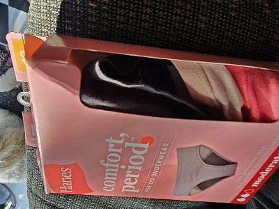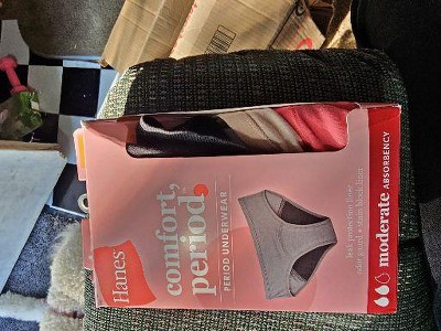 CONFIDENCE. ALL DAY, EVERY DAY. Hanes Comfort, Period.™ girls' period hipster underwear is designed to provide her with peace of mind and total comfort. Built-in leak protection liner wicks away moisture, helps neutralize odors, and is designed to minimize stains. The soft, breathable design is made from a cotton-blended fabric for a flexible fit she's sure to love. A traditional hipster silhouette, this period panty hits just above the hip for moderate coverage and features a comfortable Tagless® interior. The best part of all? Hanes Comfort, Period. hipster panties are washable and reusable, a style she can wear again and again. Stock up with this convenient 4-pack, giving her even more everyday options.