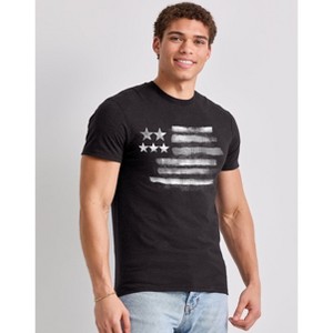 Hanes Men's Black & White Flag Graphic Tee