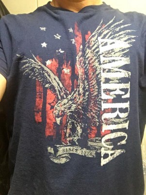 - GREAT GRAPHICS - This men's tee features an "Eagle America" screenprint design on the center chest.