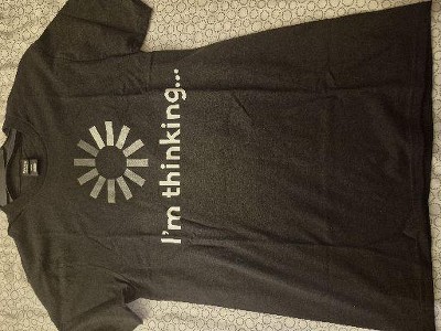 - GREAT GRAPHICS - This men's t-shirt features an "I'm Thinking" screenprint design on the center chest.