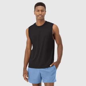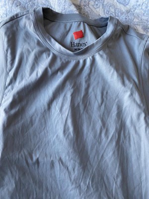 READY FOR ANYTHING Your everyday tank just got a major upgrade with this Hanes Moves Performance Tank for men. Engineered with peached interlock fabric, this men's performance tank boasts an incredibly soft feel. 4-way stretch means you’re getting a fit that moves as freely as you do, while moisture-wicking technology keeps you cool and comfortable. The design game is strong here, with wide self-fabric details at the neck and armholes, all neatly tied together with flatlock stitching. And guess what? Roomy armholes give you space to maneuver without any hassle. Finished with a Tagless® interior, this men’s performance tank is all about feeling good, staying comfortable, and moving without any limits. Hanes Moves. Ready for Anything.