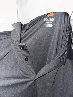 READY FOR ANYTHING This Hanes Moves Performance Polo Shirt is ideal for versatile, everyday wear – combining classic styling with an enhanced and updated fit. Engineered with peached interlock fabric, this men's performance polo delivers an incredibly soft feel. 4-way stretch means you’re getting a fit that moves as freely as you do, while moisture-wicking technology keeps you cool and comfortable. In true classic polo styling, this short-sleeve design boasts a self-placket and two-button collar. Slide slits ensure enhanced flexibility and movement, while a Tagless® interior prevents any discomfort from bothersome bunched-up tags. So, take on the day in sporty style and comfort with this men’s performance polo shirt - a true wardrobe essential for any active lifestyle. Hanes Moves. Ready for Anything.