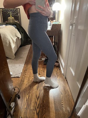 [This review was collected as part of a promotion.] I really wanted to like these. They are a nice feeling fabric to the hand, it unfortunately that’s the only thing I enjoyed. They are very unflattering. The color comes off differently in person to more of a grayish blue. They are show every bump of cellulite and pill very easily.