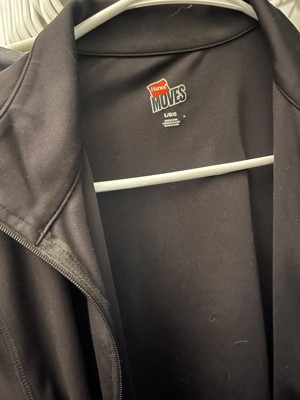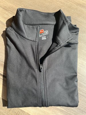READY FOR ANYTHING This soft and stretchy women's studio jacket from the Hanes Moves™ collection transitions nicely from the yoga mat to the gym to your favorite brunch spot. Crafted from peached interlock fabric, it is velvety-soft and wicks moisture from your skin - keeping you cool as your activity level heats up. The 4-way stretch ensures a made-to-move fit and the flexibility you need to tackle your day. An easy-to-layer design is both functional and attractive, with a full-zip entry and a mock neck collar. Finished with side pockets to stash the essentials, this women’s warm-up jacket is all about feeling good, staying comfortable, and moving without any limits. Hanes Moves. Ready for Anything.