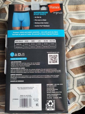 Hanes Originals Premium Men's Super Stretch Boxer Briefs 3pk - Blue/Gray/Black S: Tagless, Moisture Wicking, Quick Drying