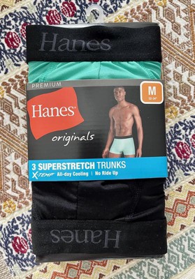 OUR BEST BASICS ARE FAR FROM BASIC Your go-to whether you’re playing hard or headed to work, Hanes Originals Premium Men's SuperStretch Trunks offer a fresh blend of trendsetting style, stretchy performance fabric, and unbeatable comfort. Moisture-wicking and quick-drying, this breathable men's underwear is powered by cooling and odor protection technologies; designed to adapt to your body temperature while keeping you fresh and cool. A modern, close-to-body design sits lower on the waist with a shorter leg than traditional boxer briefs - and is built to move when you do, thanks to a flexible waistband, no-ride-up fit, and the ultra-stretchy fabric. These versatile trunks come in a convenient 3-pack of assorted solid colors, combining sleek styling and functionality all in one essential package.