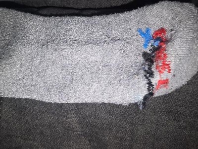 A: The socks are made from 97% polyester, 2% spandex, and 1% other fibers.