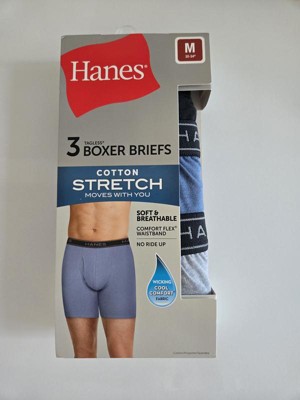 Unbelievably comfortable and skillfully designed for easy movement, the incredible value of this Hanes® men’s stretch boxer brief pack is too good to pass up. With standout features such as Cool Comfort® moisture-wicking fabric and X-Temp™ technology, which is designed to adapt to your temperature - what’s not to love about this men’s underwear? Soft and breathable, these versatile men’s boxer briefs are crafted from stretch cotton and feature a branded Comfort Flex® waistband for maximum freedom of movement. To top it off, you’ll enjoy lasting freshness thanks to built-in odor control, a feature you’re sure to appreciate. The no-ride-up legs ensure that this men’s underwear stays comfortably in place, allowing you to conquer whatever the day may bring. Even better, these Hanes men’s boxer briefs are available in a convenient assorted 3-pack, delivering exceptional affordability and unmatched quality.