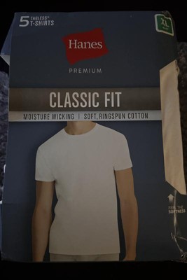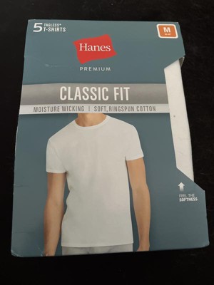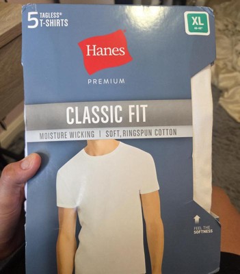 A: Thank you for your comment! We appreciate you taking the time to reach out. The Hanes Premium Men's Short Sleeve Crewneck T-Shirt 5pk - White is made from 100% cotton.