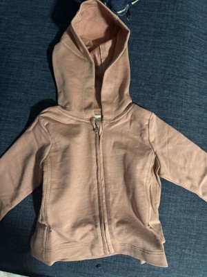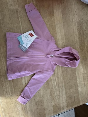 [This review was collected as part of a promotion.] I got this hoodie for my niece who will soon fit into it and I can't wait to give it to her. The color is a really cute pink and will look great on her. The material is really soft and the hoodie is easy to zip and unzip. I don't have a picture of her in it yet so I just took a picture of the hoodie as is so you can see how it looks irl.