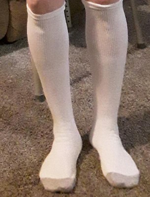 [This review was collected as part of a promotion.] I got these socks for my husband to try, thinking they would be good for his size 14 feet and wide calves since they're a taller sock. What I didn't know is that tube socks are lacking the defined/cushioned heel, so be aware of that prior to purchase - my husband said he doesn't like this style of sock due to this difference compared to his normal athletic crew style. He did say the toe portion was comfortable and felt nicely cushioned. He mentioned the upper portion felt a bit thin for his preference, and that he would rather have a thicker/more defined material throughout, not only at the toe. They do go up quite high on the calf as described, so if that's what you're after, these will work well. Unfortunately these socks were mostly helpful for my husband to confirm what he doesn't like in a sock, but most of the issues were more preference than actual product flaws. The material of the main sock body does feel a bit flimsy/cheap, but the toes are nice and the top part has good stretch. Overall not something we would buy, but might be a good option for others who knows they like this style of sock. We received these socks as a sample to try in exchange for a review, but the opinions are based on our actual experience with the product.