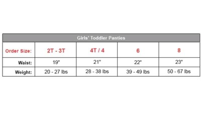 toddler girls Underwear| Size | Weight (lbs) | Chest | Waist |