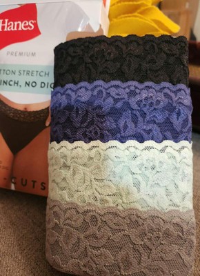 COMFORT IN EVERY DETAIL The perfect combo of comfort and style, this Hanes Premium women’s hi-cut underwear is sure to become your new favorite everyday panty. Made with fabric featuring the perfect amount of stretch, this women’s hi-cut underwear is both breathable and comfy. A classic leg-flattering cut with a full coverage back, this women’s panty will have you feeling confident all day long. With stay-in-place leg bands and a tag-free interior, this comfortable design allows you to move freely without any fuss. Say goodbye to panty lines, as well as pinching and digging - thanks to its soft floral lace waistband and smooth design. Plus, these women’s hi-cut panties are moisture-wicking, so you’ll stay cool - no matter what. Available in an assorted 4-pack, this hi cut panty is everything you could ask for in women’s underwear.