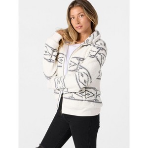 Stay cozy in this printed fleece jacket. It features a super soft fabric feel and front zip design with high collar.