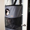 The K&H Hangin' Cat Condo is available in two sizes, the modest 3-story Cat Condo and the 5-story High Rise Cat Condo. The High Rise is the ultimate for fun and relaxation. Designed with mesh windows on two levels of the five levels allows cats to lookout. The incredible space-saving design simply attaches to any door. No more valuable floor space is taken up by bulky cat trees and cat furniture. The 3-story Condo is not only beautiful but is also functional. With top and bottom straps to securely lock the condo in place, it provides rigid security for your cats most ambitious playtime. A mesh window on the middle level allows cats to lookout. This 3 story Hangin Cat Condo also was designed with a comfortable lounging or sleeping surface on the top. One year limited warranty.