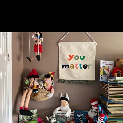 Woah! This wicker rainbow wall basket is precious! It's a great size and unique shape so a perfect addition to a child's room, nursery, or play room. I'm still not 100% certain what I'm going to put in it (maybe some faux trailing plants or toiletries), but I love the functionality of it. The basket is lined with felt so if you have delicate items like muslin blankets, they'd be safe from snags. There are three holes on the back for easy hanging with either a nail or a hook so that's a nice feature as well. The only hangup is that the rainbow edges inside the basket are slightly "unfinished" so I wouldn't personally hang it below eye level. If it'll ever be empty, it won't look as great since the interior felt doesn't mask that area. As I'll likely hang this as part of a gallery wall, that's no issue for me.