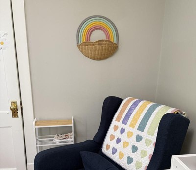 This rainbow basket is SO cute! I wanted some rainbow wall decor for my daughter’s nursery and this is perfect. I’m not sure what to put in the basket but it fits a little stuffed animal perfectly.