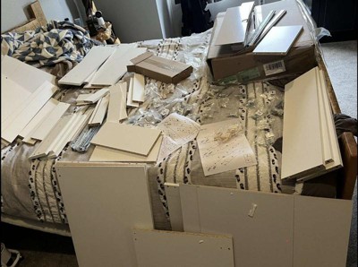 My daughter and I started putting this together but as we pulled the boards out of the boxes, we noticed small chips on the edges. We paused, discussed whether we wanted to return the vanity or continue building. We decided we could probably put it together mindfully, making sure the chips were facing down or against the back of the unit when able, so they weren't very visible. But moving forward we realized we needed to do this with nearly every board. We decided that for something brand new and costing more than $130, we didn't want to settle for chips and dings on nearly every surface. Very disappointed. Plus the boxes are heavy meaning the return is going to be a hassle. Do not recommend.