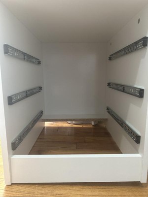 This thing is a nightmare to put together. You need to have at minimum 6 hours put aside for it. And if you run into issues like this one had with the drawer slides, another hour or two. The pre drilled holes for the 3 small drawers were in inch lower on one side than the other. I had to do a lot of measuring and moving to get them right. But you won't figure this out until the very end, at which point, you've already got too much time invested to turn back.