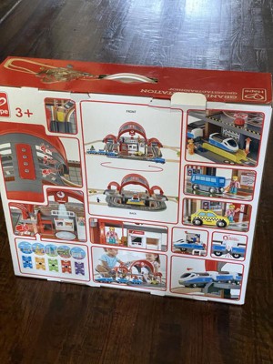 HAPE GRAND CITY STATION: LIGHT & SOUND - 49 PIECES - Visit the world’s most exciting destinations with this bustling two-level station! It has a projector that displays images of big global cities when five special tickets are inserted, plus a recorder for station announcements. SEE THE WORLD: Become a world traveler with this bustling two-level railway station. Navigate the world by inserting five special tickets into the projector and enjoy images of Paris, London, New York, Berlin and Beijing. WOODEN RAILWAY STATION: The interactive toy set comes with a range of tactile features such as a light on the upper roof that can be switched on and off. Your child can even make their station announcements on the built-in recorder. IMAGINATIVE ROLEPLAY: Let your child create play scenarios in the life of a busy station using the figurines and vehicles. They could roleplay as a conductor with a safety sign, a mechanic with a wrench and a tourist with luggage. SAFE TO PLAY WITH: All Hape products are manufactured with sustainably sourced, high-quality materials and finished with non-toxic child-safe paint.